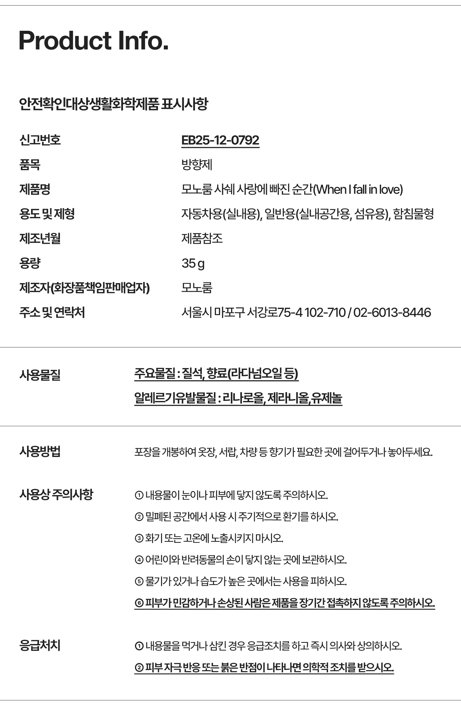 | 교환/반품은 제품 수령 후 7일 이내에 가능합니다. 자세한 안내는 카카오톡 “모노룸”에게 문의 주세요. |