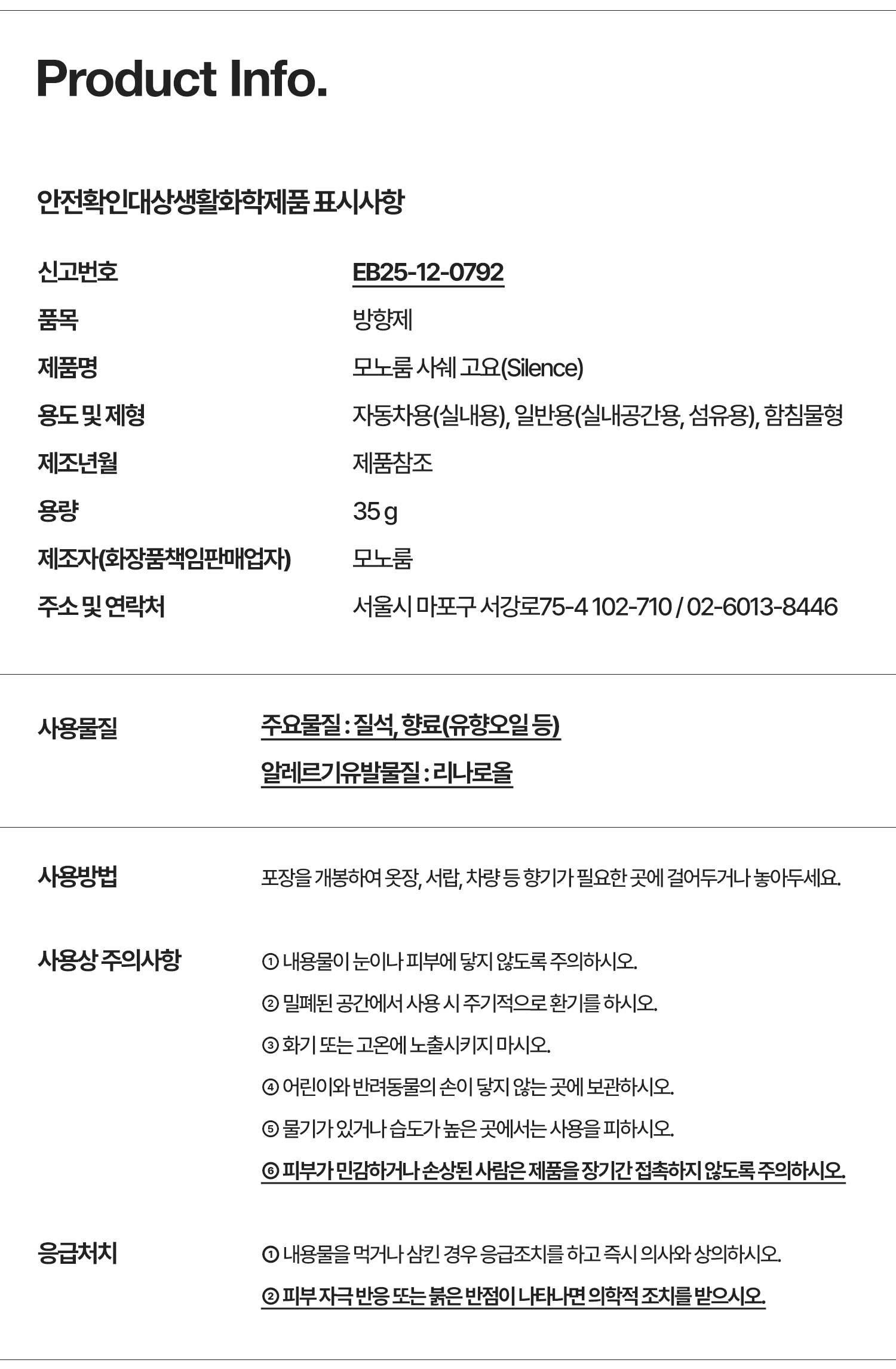 | 교환/반품은 제품 수령 후 7일 이내에 가능합니다. 자세한 안내는 카카오톡 “모노룸”에게 문의 주세요. |
